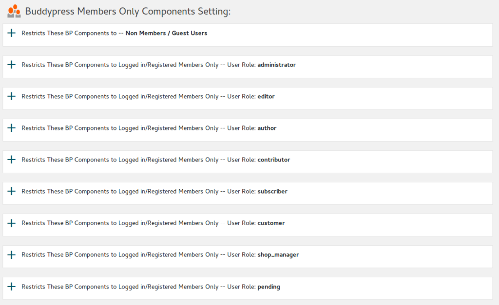 Yes, we have developed this function many years before, this is our original thoughts, before our buddypress restriction product, the whole internet have no this solution because no users find this requirement, our developer make the idea to help buddypress admin protect buddypress components(members / groups / activity / messages… etc) to non-member users, based on user roles of buddypress, we are happy to add a few theses functions to free versions too, you will see more and more function be added in to the free version of buddypress members only plugin 🙂